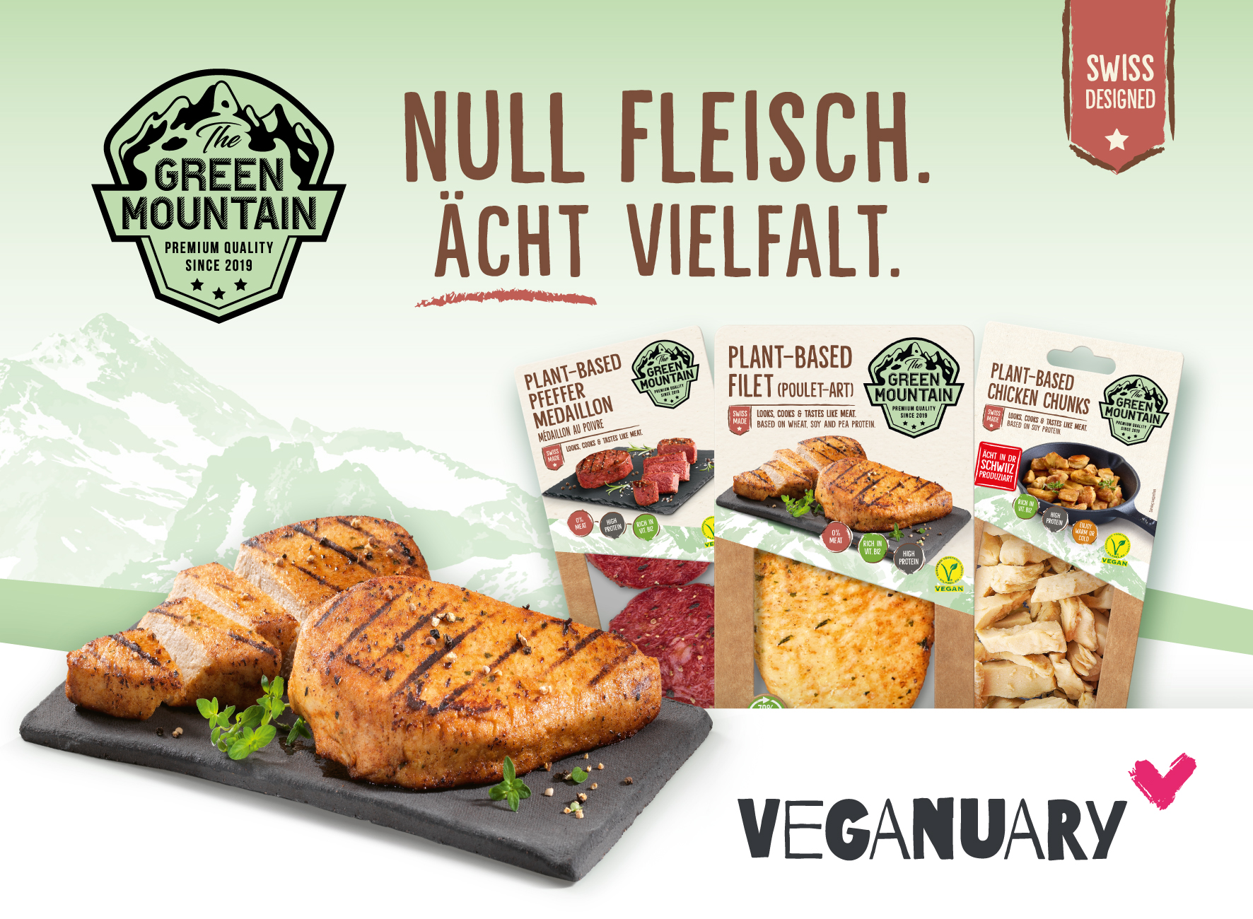 THE GREEN MOUNTAIN ist nämlich gerne wieder beim Veganuary dabei. Lust mitzumachen? Wir haben uns einiges einfallen lassen. Es wird bunt, richtig abwechslungsreich und ÄCHT guat auf den Tellern.