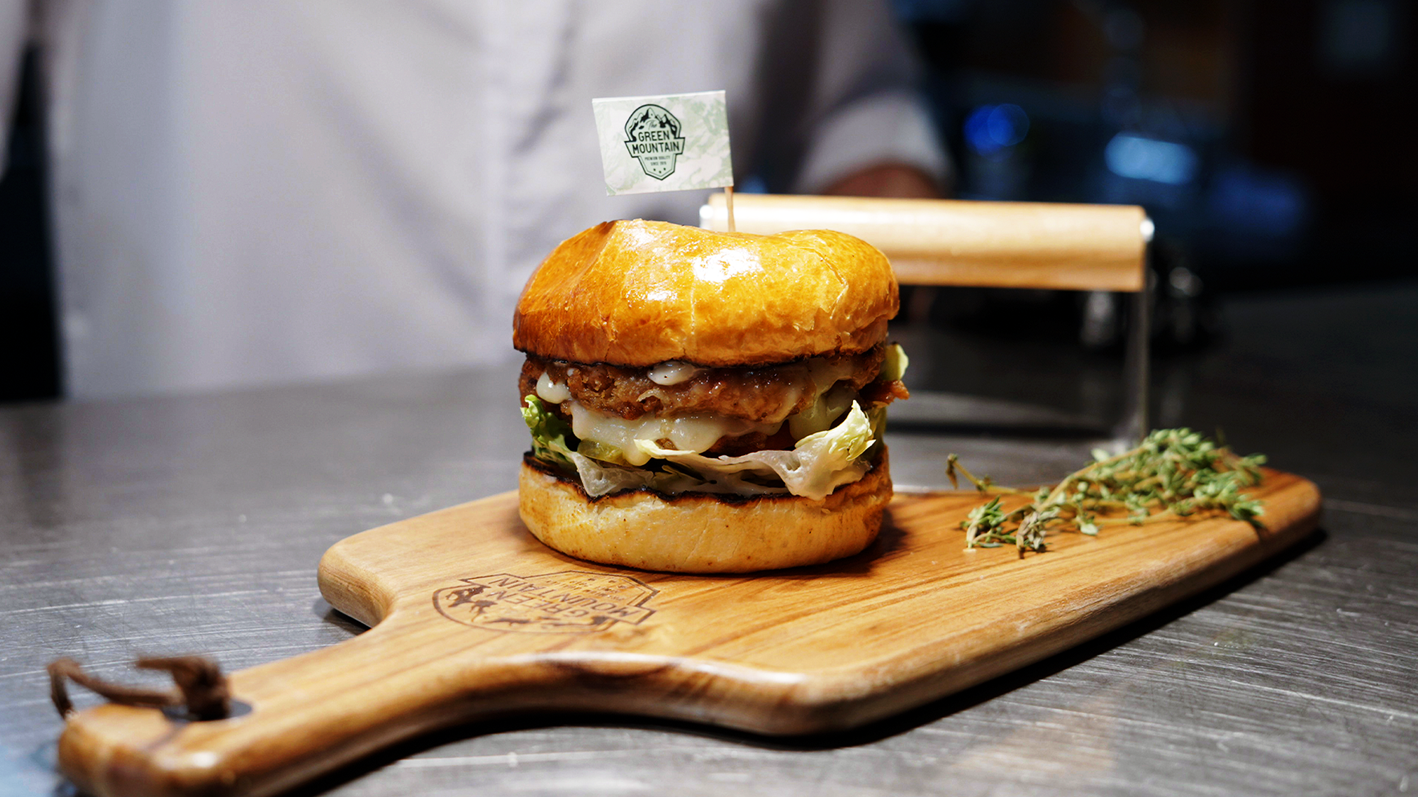 Endlich! Den trendigen Smash Burger gibt es jetzt rein pflanzlich. THE GREEN MOUNTAIN schafft mit dem Plant-based Smash Burger einen neuen Genuss zwischen zwei Buns. Pur und unverfälscht im Geschmack, vielseitig einsetzbar und ab sofort exklusiv für die Gastronomie erhältlich.