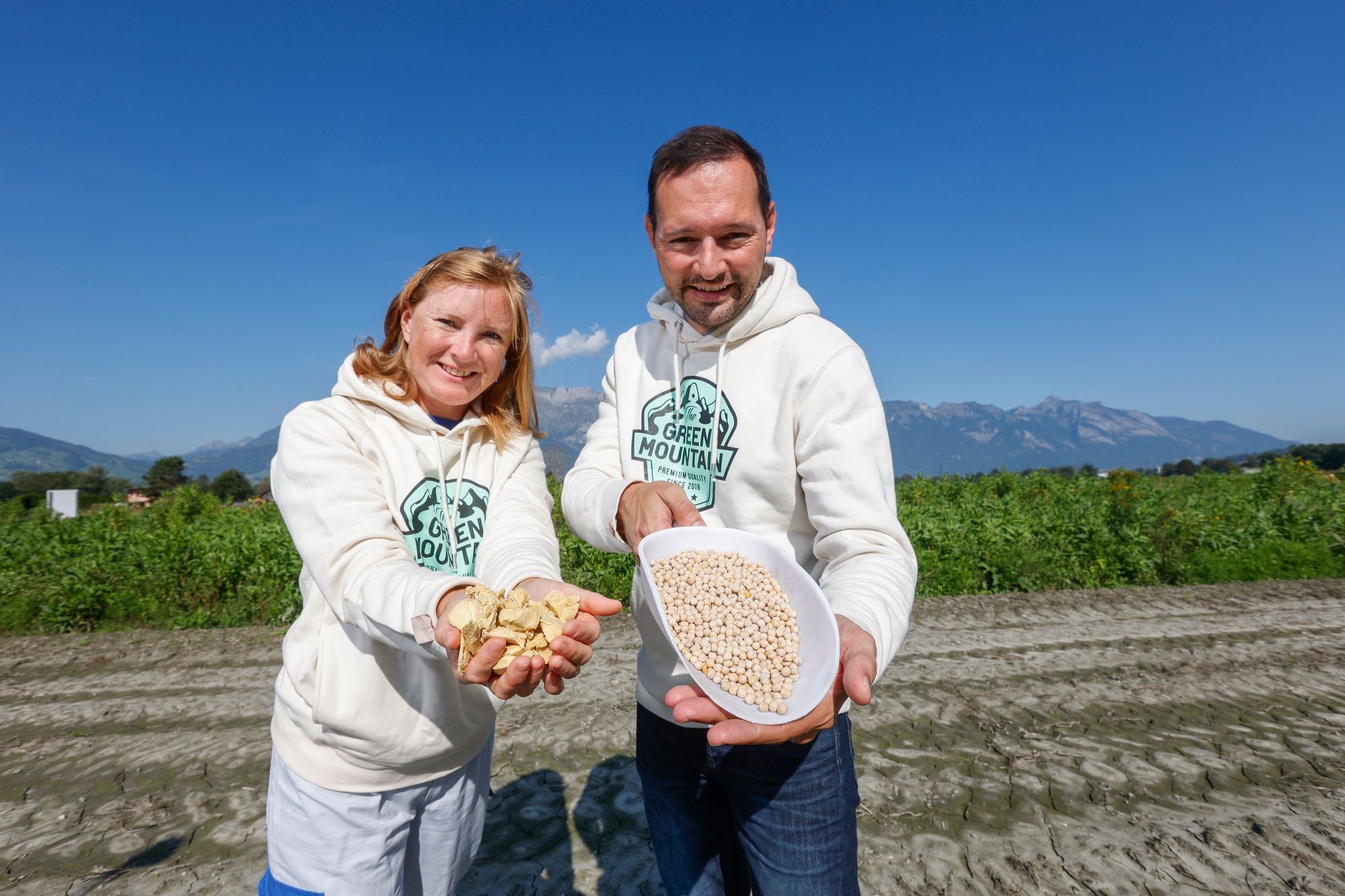 Mit hochwertigen Fleischalternativen eroberte das Schweizer Start-Up THE GREEN MOUNTAIN innert Kürze die Schweizer Küchen – und überzeugt auch internationale Fachjurys. Die Macher aus Landquart heimsten mit ihren Premiumprodukten aus rein natürlichen und pflanzlichen Zutaten schon zahlreiche Preise ein. Etwas schmeckte den Pionieren bislang aber noch nicht so recht.Rohstoffe wie Soja-, Weizen- und Erbsenproteine – die Basis für pflanzliche Fleischimitate – werden in der Schweiz kaum angebaut und verarbeitet und müssen daher importiert werden. Noch! Denn es gibt sie bereits. Die vielversprechenden Anbauversuche der Schweizer Manufaktur mit lokalen Landwirten. Das junge THE GREEN MOUNTAIN Team hat in den letzten Monaten wieder richtig kräftig umgerührt und setzt jetzt mit den Limited Edition Plant-based Chicken Chunks aus 100% Schweizer Anbau ganz neue Massstäbe.