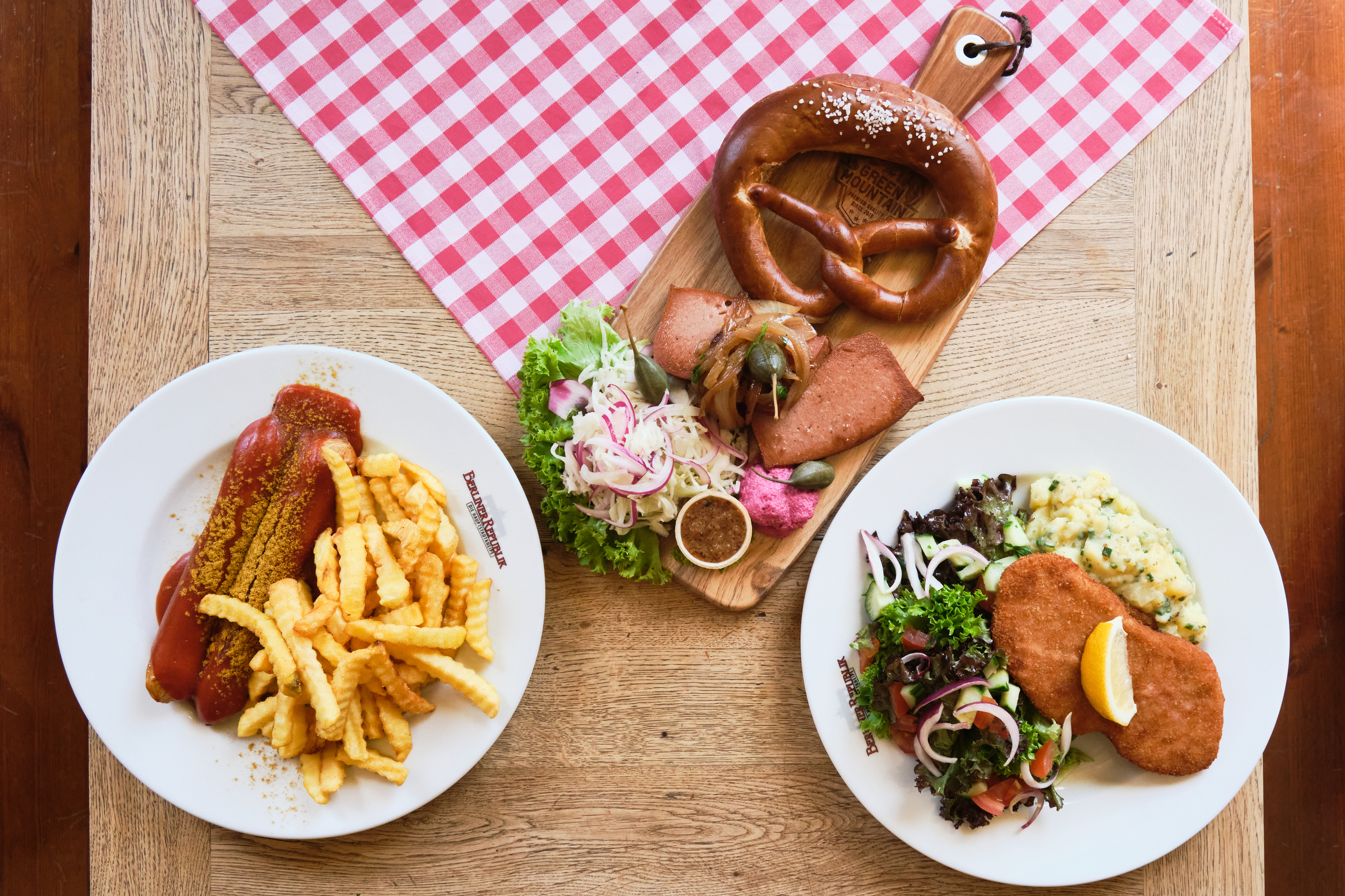 Gleich drei Produkte aus dem Sortiment von THE GREEN MOUNTAIN stehen künftig auf der Speisekarte der Kult-Kneipe in Berlin-Mitte: pflanzlicher Fleischkäse, veganes Schnitzel nach Wiener Art und vegane Currywurst. Drei Speisen, genauso herzhaft und liebevoll zubereitet, wie die traditionsreichen Klassiker der alteingesessenen Küche des Restaurants im Regierungsviertel.