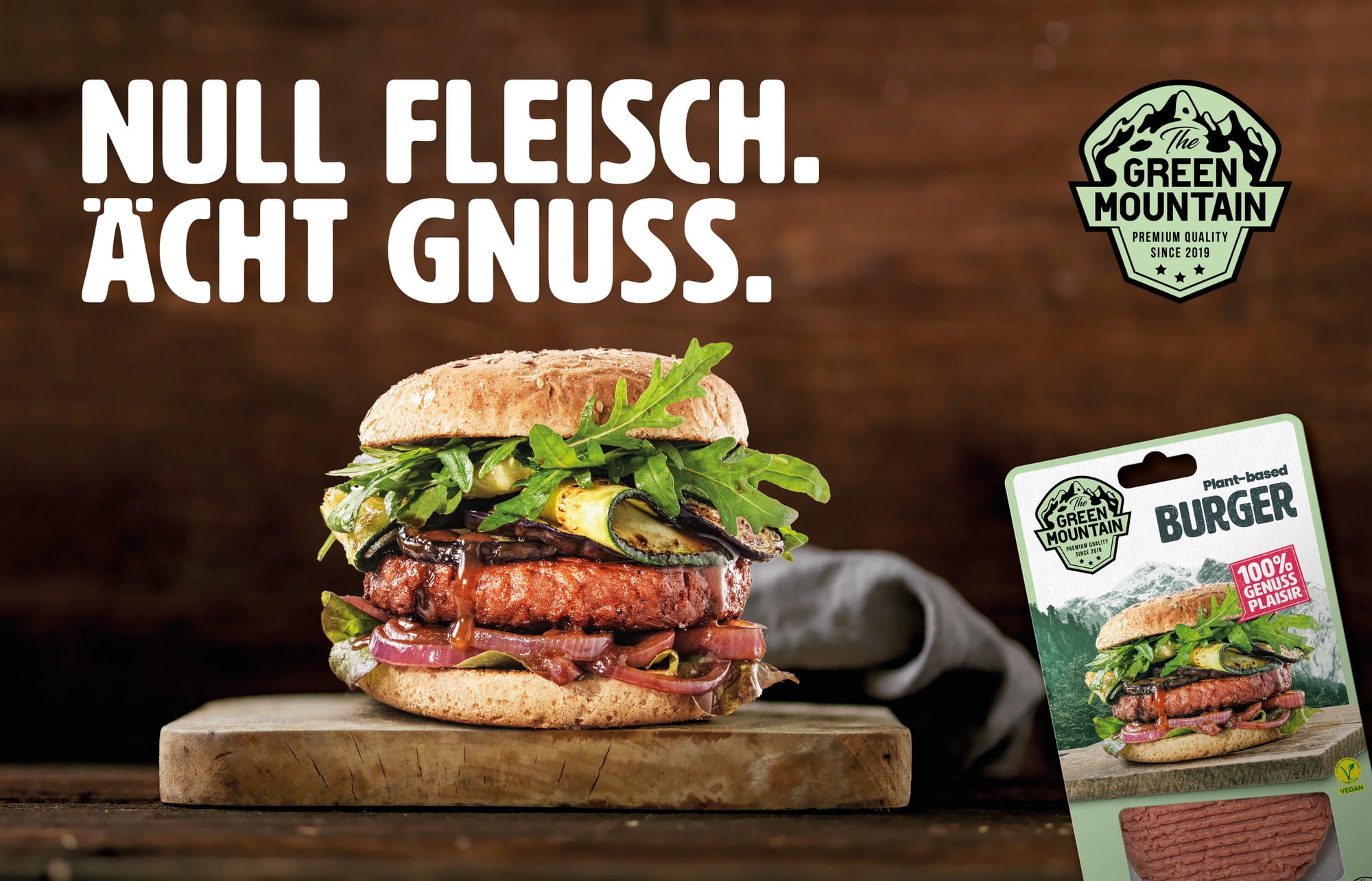 Ein grosses Sichtfenster gibt den Blick auf das Produkt frei, das wie das Pendant zu Fleisch aussieht und sich nicht zu verstecken braucht. Zusätzlich regt ein hochwertiges Bild vom zubereiteten Produkt den Appetit an und bringt das Motto "Null Fleisch. Ächt Gnuss" kompromisslos auf den Punkt. Werner Ott, als THE GREEN MOUNTAIN Geschäftsführer:"Das neu gestaltete Verpackungsdesign zahlt auf die Vorzüge des jeweiligen Produktes ein, gibt Orientierung und schafft Vertrauen. Unser unverwechselbares und authentisches Design ist ein wichtiger THE GREEN MOUNTAIN Erfolgsfaktor – gestern, heute und morgen".